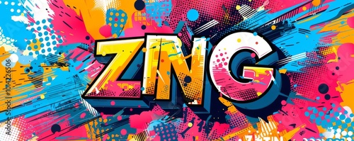 Colorful pop art background with "ZING" text. Electric theme, Bold graphics, Dynamic vector background