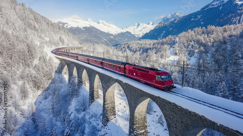 Breathtaking Aerial View of Landwasser Viaduct in Winter