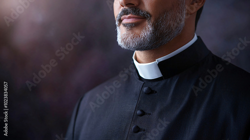 crisp white clerical collar contrasting against black priest robe
