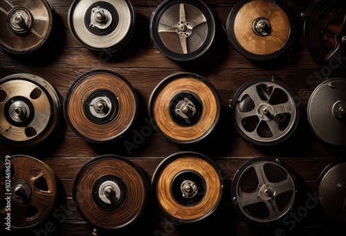vintage film reels displaying rich textures intricate grain patterns ideal authentic retro aesthetics, analogue, art, artefact, blank, canvas, celuloid