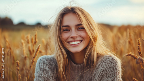 Młoda dziewczyna z uśmiechem na twarzy odpoczywa na łonie natury.