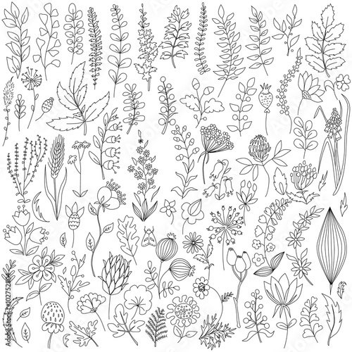 Handmade flowers and leaf elements set
