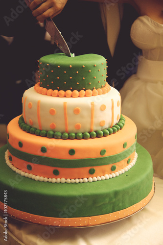 Ozdobny Zielono - pomarańczowy tort lukrowy