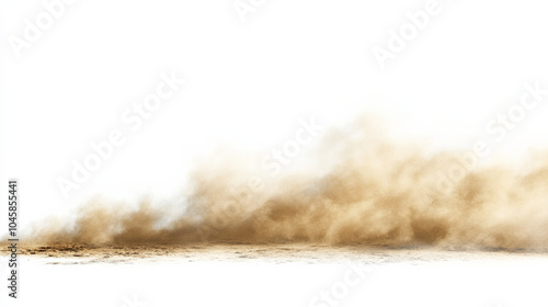 Realistic dust clouds isolated on a white background, resembling a sandstorm or polluted air, perfect for visual effects or environmental themes