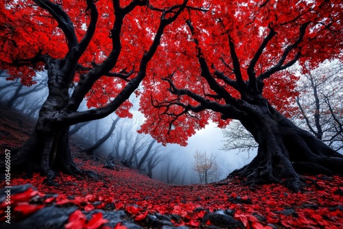 A gothic forest at twilight with dark, towering trees, mist swirling between them, capturing the mysterious and reverent beauty of nature cherished by pantheists, symbolizing mystery and respect