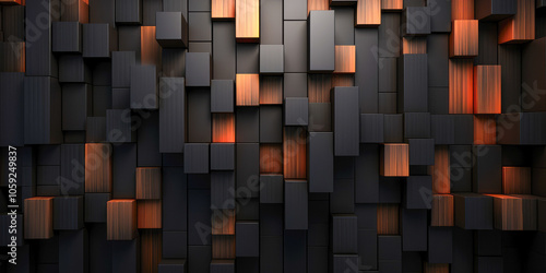 A pattern of dark rectangular blocks with an orange glow, creating a geometric and dynamic visual texture.