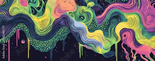Rivière ondulante aux couleurs arc-en-ciel avec cascade de motifs organiques.