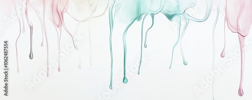 Gouttes de peinture turquoise et rose en suspension délicate.