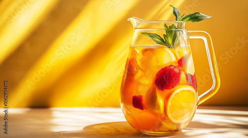 Refreshing citrus fruit punch in a glass pitcher with mint