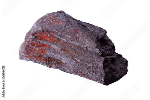 Mineral Rock Hematite Silver Color with Rust Isolated in White Background