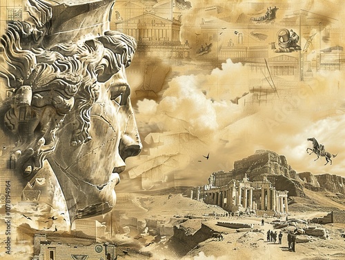 Ancient Wonders: A Collage of Greek and Persian Architecture