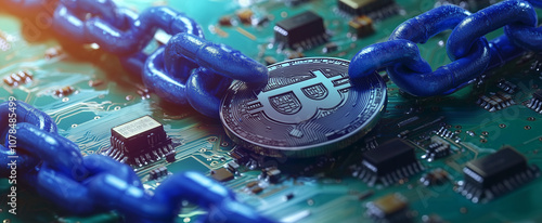 Bitcoin e blockchain. Bitcoin legato a una catena di blockchain.