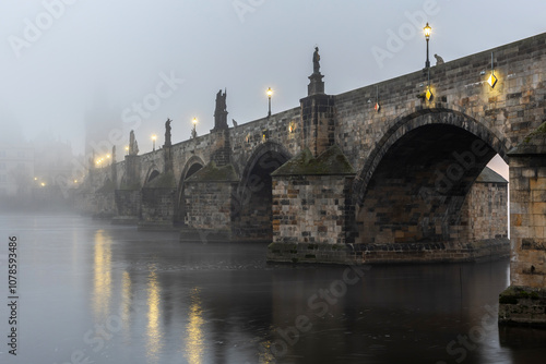 Charles bridge in foggy morning. ( Karluv most v ranni mlze) Prague