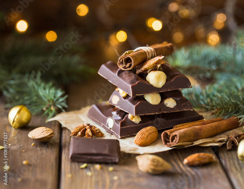 Świąteczna ręcznie robiona czekolada mleczna z orzechami