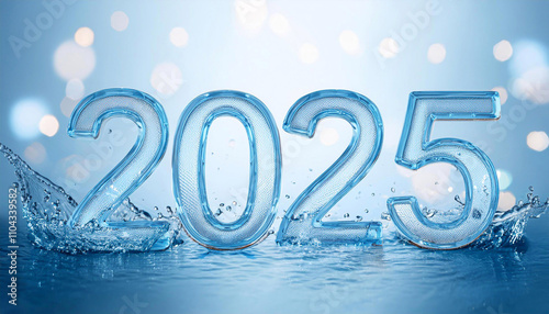 Nowy rok 2025 , wodny mroźny napis. Sylwester, niebieskie tło