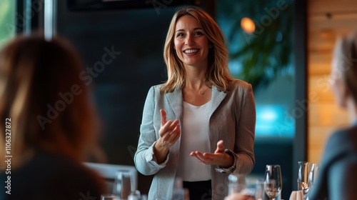 Mujer hablando en reunión de negocios