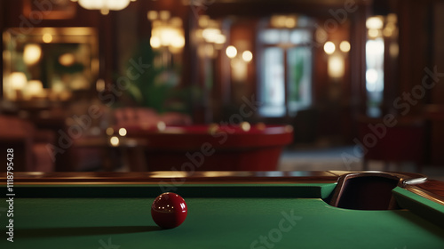 Stół bilardowy z kijem i kulą w luksusowym wnętrzu klubu sportowego.