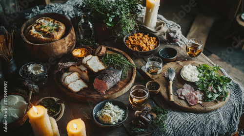 Cozy Traditional Icelandic Meal Featuring Various Ingredients and Warm Atmosphere