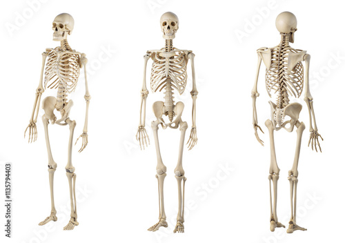 Set of realistic human skeleton front and back. isolated on white background with clipping path. cut-out.