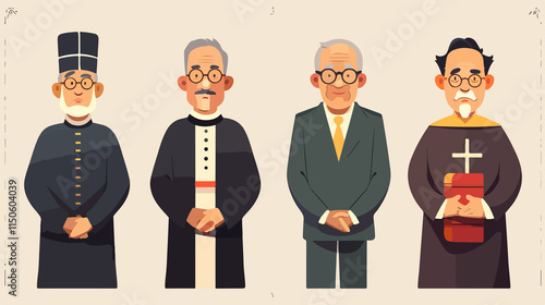 Flat Vector Set of Cartoon Catholic Priest Illustrations