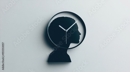 Stylized clock inside human silhouette symbolizes the passage of time and its impact on human life, representing the balance between moments and existence.