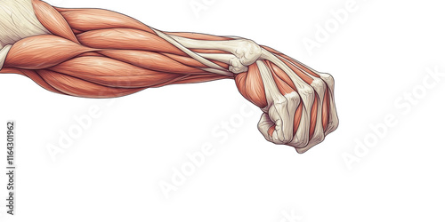 Anatomical illustration of arm muscles and tendons isolated on transparent background