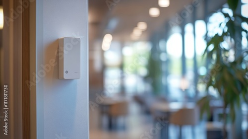 Modern building integrating intelligent lighting control system for optimizing energy efficiency and creating a sustainable workspace in a blurred office environment