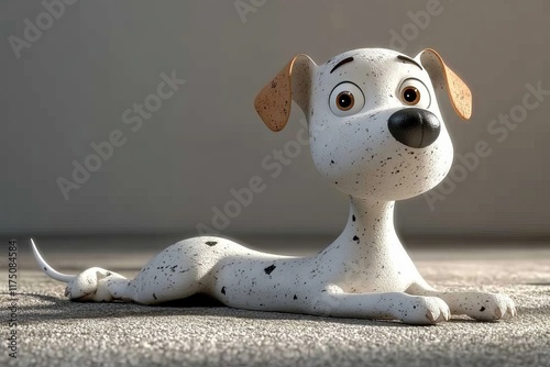 A cute dog character lies comfortably on the floor, showcasing a playful, serene vibe, ideally representing themes of relaxation and companionship in a light-hearted manner.