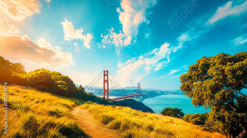 Golden Gate Bridge: A Majestic San Francisco Landscape at Sunset. Breathtaking views, iconic architecture, and picturesque scenery. A must-see travel destination!
