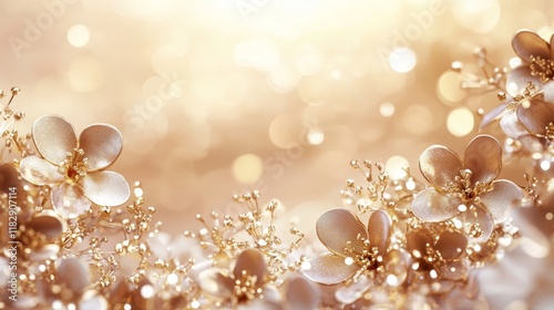 Elegant Soft Gold Floral Background with Shimmering Bokeh Lights