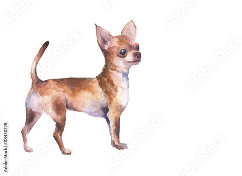 Акварельная иллюстрация чихуахуа золотистого окраса