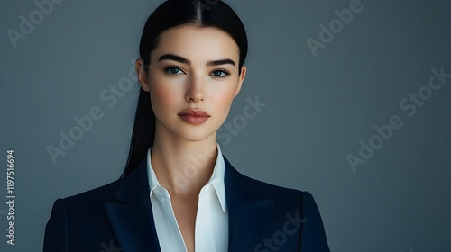 kobieta, czarne włosy, proste włosy, elegancja, marynarka, biurowy styl, profesjonalny look, bizneswoman, portret, minimalistyczne tło, profesjonalna fotografia, kobieta w biznesie, formalny strój, bi