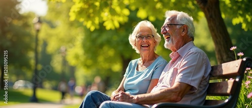 Senior Couple Joyful Park Stroll After Shopping, Happy Seniors, Outdoor Fun, Retirement Relaxation