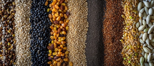 An assortment of grains and seeds. Great for healthy lifestyle blogs, organic food adverts and cookbooks.