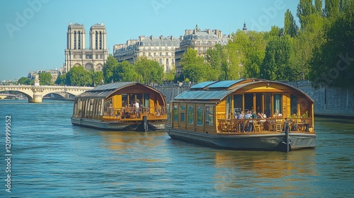 Scenic View of Houseboats on the Seine River in Paris, France