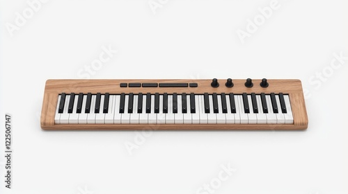 Wooden Keyboard with Black and White Keys and Control Knobs for Music Production Use