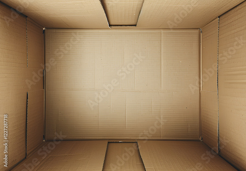Wnętrze pustego kartonowego pudełka widziane z góry.