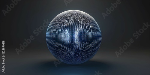 3D rendering of an abstract digital sphere composed of dots with a gradient background, AI generated