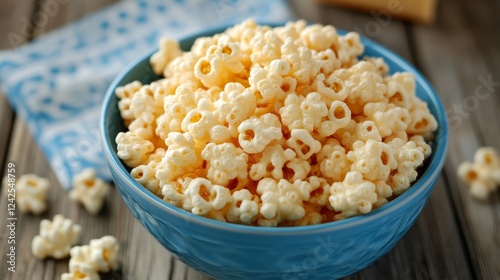 Cheese puffs in a blue bowl Cheese Doodle Day puffcorn