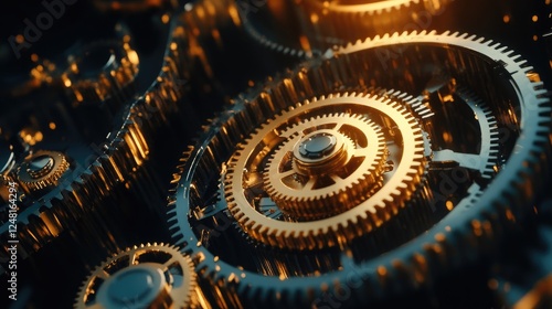 Floating gears rotating in unison, illustrating the collaboration between innovative startups and large enterprises, working together to propel economic progress.