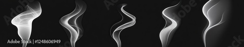 Various smoke types emerge from a pipe against a black background