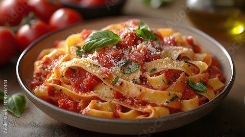 Delicious pasta with tomato sauce basil and parmesan cheese
