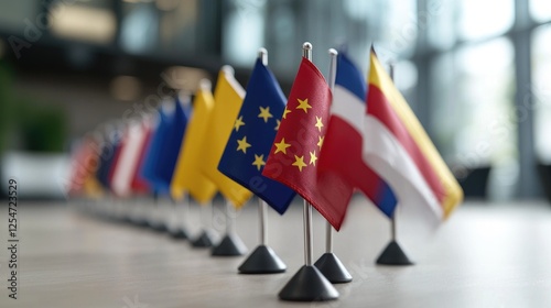 International flags meeting table conference global collaboration