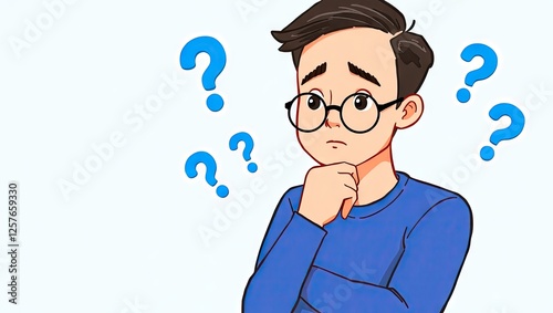 Boy Thinking with Question Marks Illustration Concept of Confusion and Uncertainty
