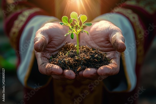 Christian Priest’s Hands Cradling a Sprout – Symbol of Faith and Earth Stewardship