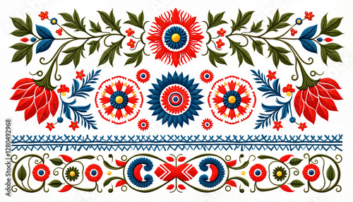 Intricate floral motifs in traditional Hungarian folk art design, craftsmanship