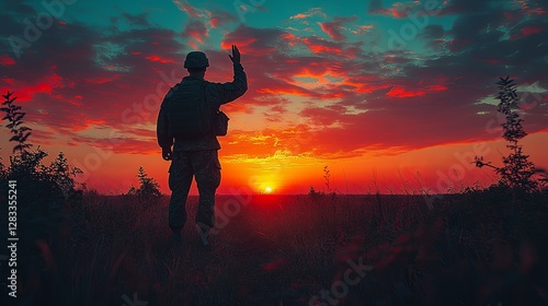Soldier saluting in silhouette against sunset, embodying honor and resilience.