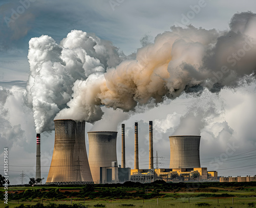 Elektrownia przemysłowa emitująca dym, zanieczyszczenie powietrza