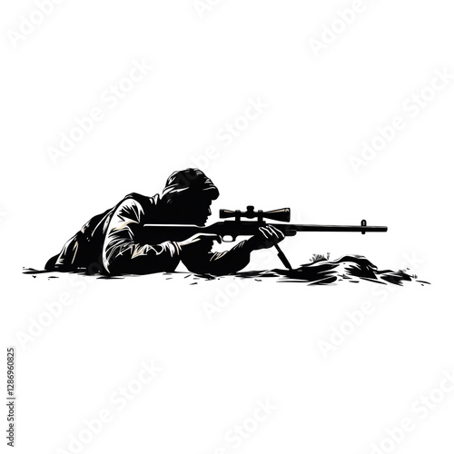 Isolated Sniper Silhouette