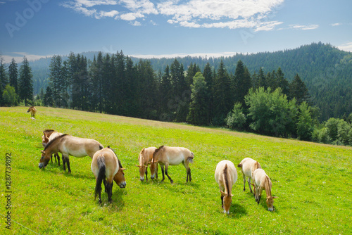 Przewalski-Pferd, Equus przewalskii, Pferde auf der Weide